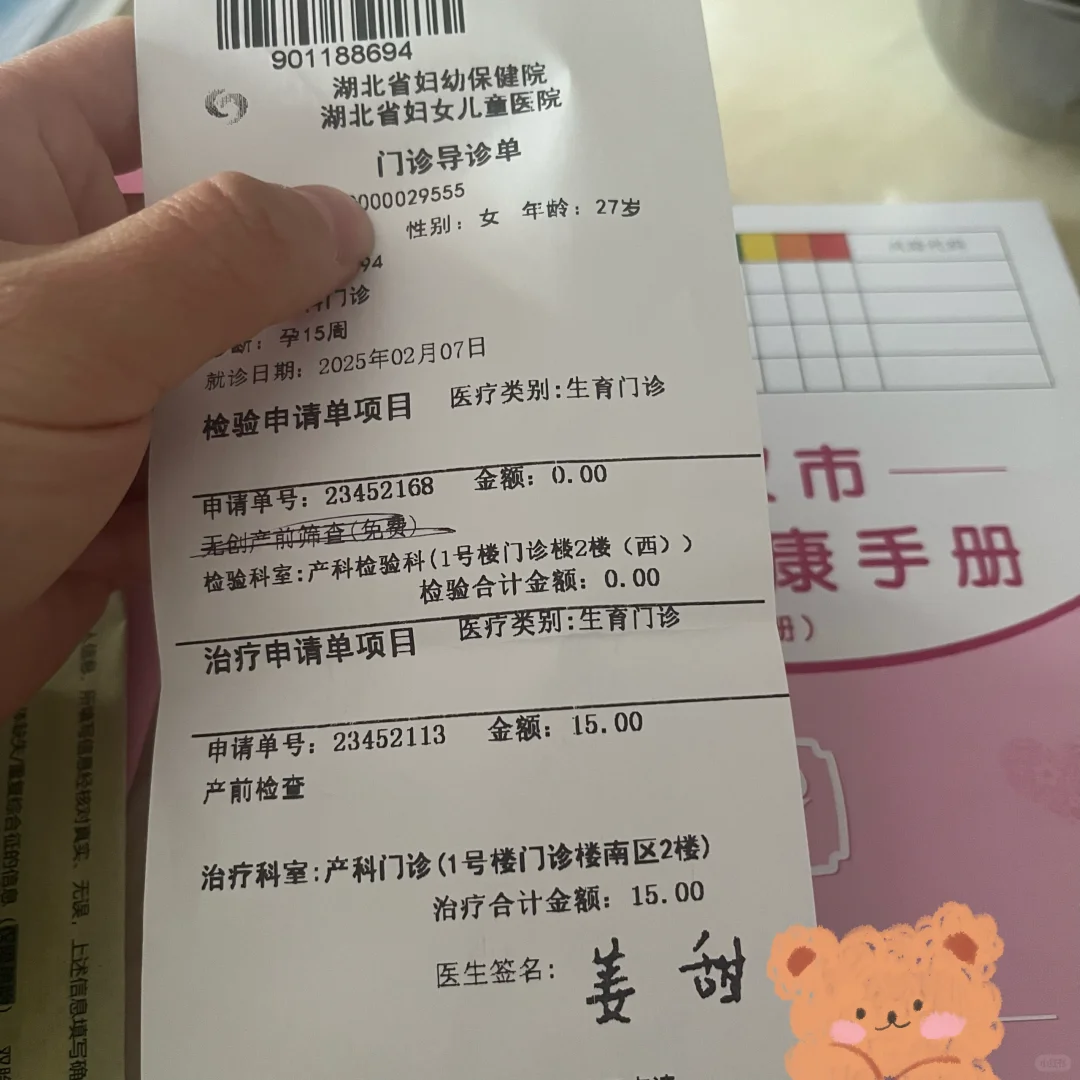 的房间测血压量身高(此项目为自助服务🌝测之前记得拿号票在电脑上扫一下)最后回到医生诊室,医生会在建档手册记录🍃缴费(无创是免费的 但是会有15💰的听胎心费用 项目是一起组套的不然没法抽血)